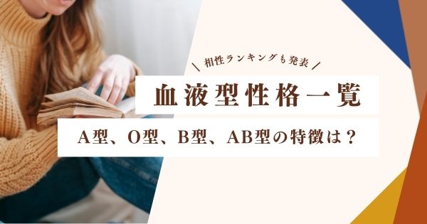 A型・O型・B型・AB型それぞれの性格の特徴やあるあるを分かりやすく解説します。恋愛・結婚・仕事・友人関係における傾向や、血液型別の相性一覧、ベスト・ワーストランキ…